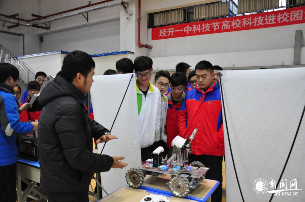 11月24日,我校走进西安市经开一中,组织大学生科技创新作品参加该校第二届科技节。活动中我校与西北工业大学、长安大学、西安电子科技大学、西安理工大学、西安工业大学共六所高校集中进行了展示和表演。我校参展作品吸引了众多师生的目光,电信学院指导教师和参展学生团队现场演示了履带式机器人、四轴飞行器、步兵机器人等三件科技创新作品。在演示过程中,不但为高中生详细讲述了参展作品原理、操作方法和功能,发放了作品说明和宣传材料,而且进行了面对面的互动与交流,反响热烈,气氛活跃。当场有学生表示希望自己能到学校深造,可以亲自动手参加科技创新作品设计制作来实现自己的梦想。