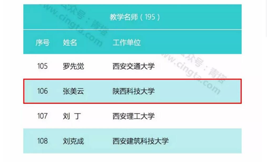 陕科大张美云教授入选第三批国家“万人计划”人员名单其领衔的团队入选首批“全国高校黄大年式教师团队”
