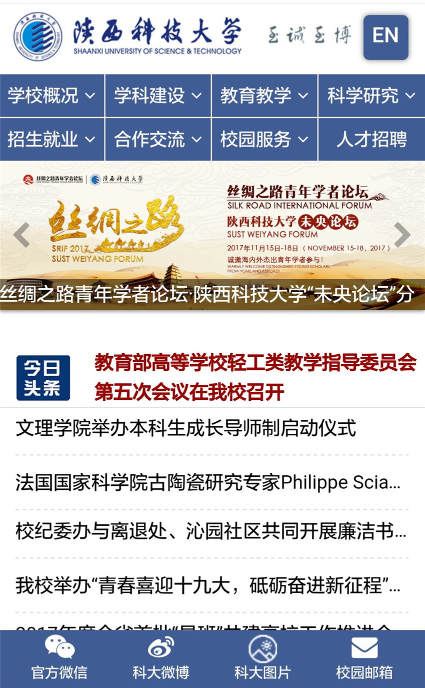 10月31日,陕西科技大学网站手机版试运行开启,全校师生员工和广大校内外人士动动手指,就能得到界面更加友好、互动交流更加顺畅、服务功能更加便捷的体验。