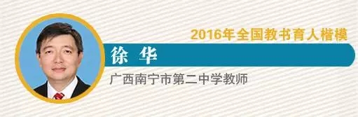 徐华,男,汉族,1969年1月出生,中共党员,广西南宁市第二中学教师。他以“耐住寂寞,坚韧做人”的态度长年坚守在教育教学一线,连续21年担任班主任。他带了7届学生,每一个班级均被评为市、区优秀班集体。作为“八桂名师”,他在广西区内外作了近百场专题报告,感染和激励了许多教师。“教学生三年、想学生三十年、想国家民族三百年”,这是他对教育事业的情怀与承诺,也是他在教学科研中一步步践行着的誓言。曾获全国模范教师、苏步青数学教育一等奖、广西青少年成长成才导师等荣誉。