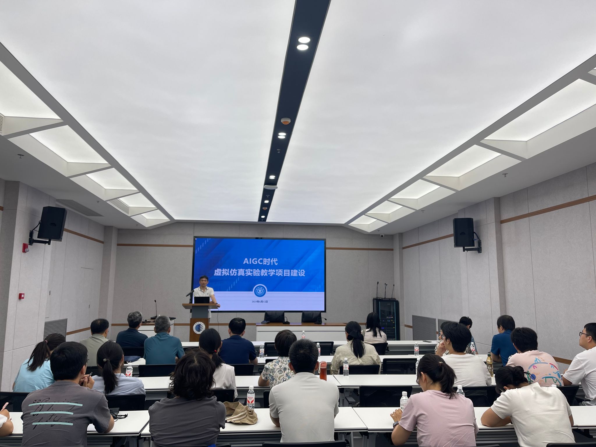 会上,张彦鹏以《AIGC时代虚拟仿真实验教学项目建设》为题,从国家政策解读、申报书撰写技巧、支撑材料整理规范等方面进行针对性指导,重点围绕课程目标设定、教学内容设计、资源整合优化以及特色亮点凝练进行深入浅出的解读;并结合知识图谱构建与AI技术融合的典型案例,展示虚拟仿真课程建设如何借助前沿技术实现创新突破,为与会教师开拓课程建设新思路。现场互动环节,他就老师们关心的申报细节、信息技术融合等问题逐一进行解答。