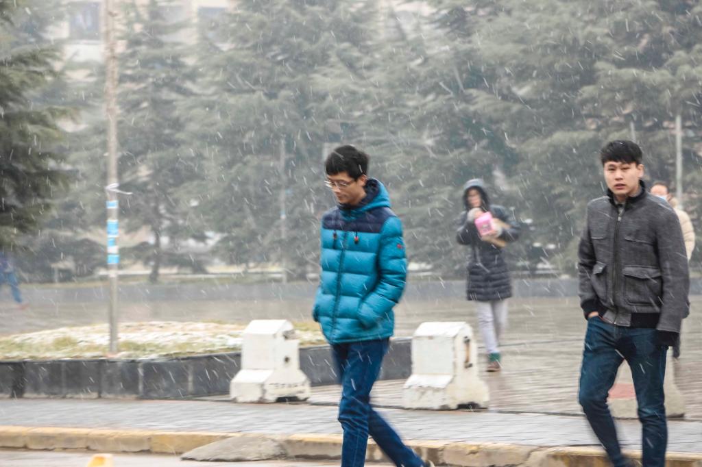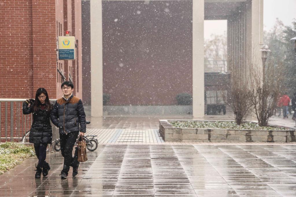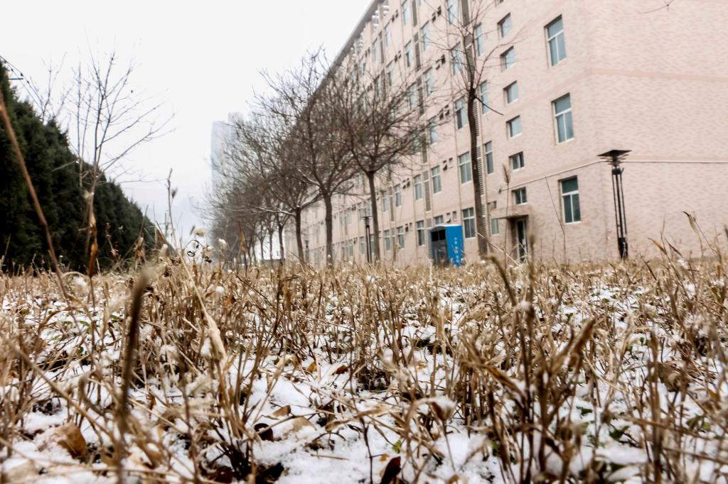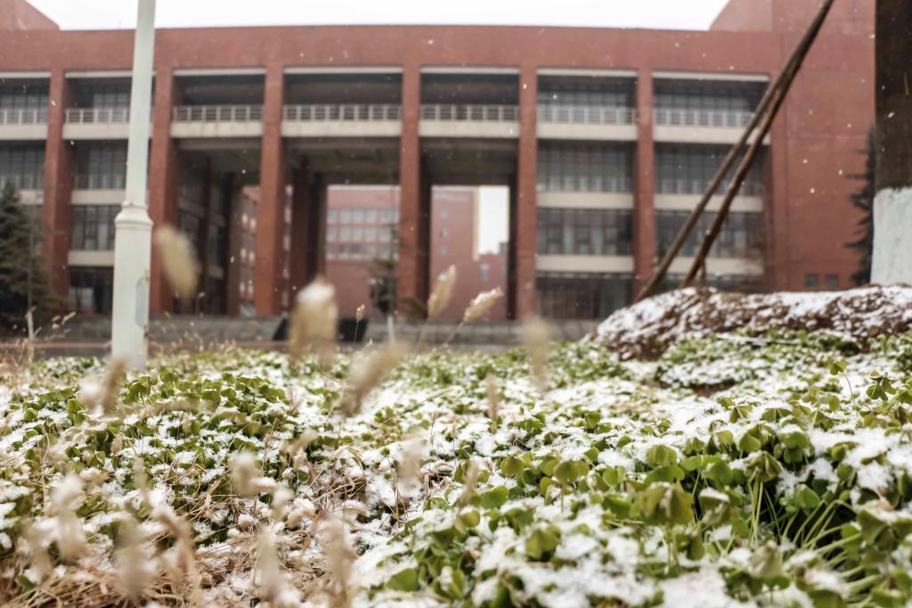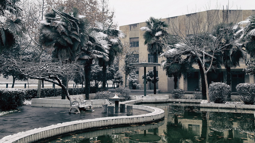 2016年1月12日,新年的第一场雪普降西安。她迎着万众期盼的目光,带着2015年喜悦的记忆,飞向大地,飞入科大校园。清晨的半明半暗之际,她在咸阳校区的校徽上洒下一片素雅的白;她轻盈地拂过老图书馆外的马赛克壁画;她在老体育馆外留下一场惊心动魄的静美;当这个“冬之精灵”来到西安校区时,图书馆和它的倒影双双凝成了一首诗;转眼之间,她又定格在了一尊小小的像上;或是让人在纯纯的洁白上留下属于自己的印记;天愈来愈亮,青松在她的舞动中依然挺拔;她吻着草坪,来年的春天会奉送新绿;银装素裹的大地无处不是她描绘的画意;她拥抱大楼,欲飞的苍龙显得如此安然;本是玲珑剔透的清净体,何曾染过一丝尘埃;她最终落在新绿上找到自己的归宿——“冬天来了,春天还会远吗?”雪来了,她笑着、飞舞着,向我们亲切地打着招呼——一个人的道路,因为她的陪伴不再孤单;两个人踩着碎银,走出欢快的清歌;一群人在这洋洋洒洒的世界里冲破雾的迷茫,踏出无悔的青春节拍……
