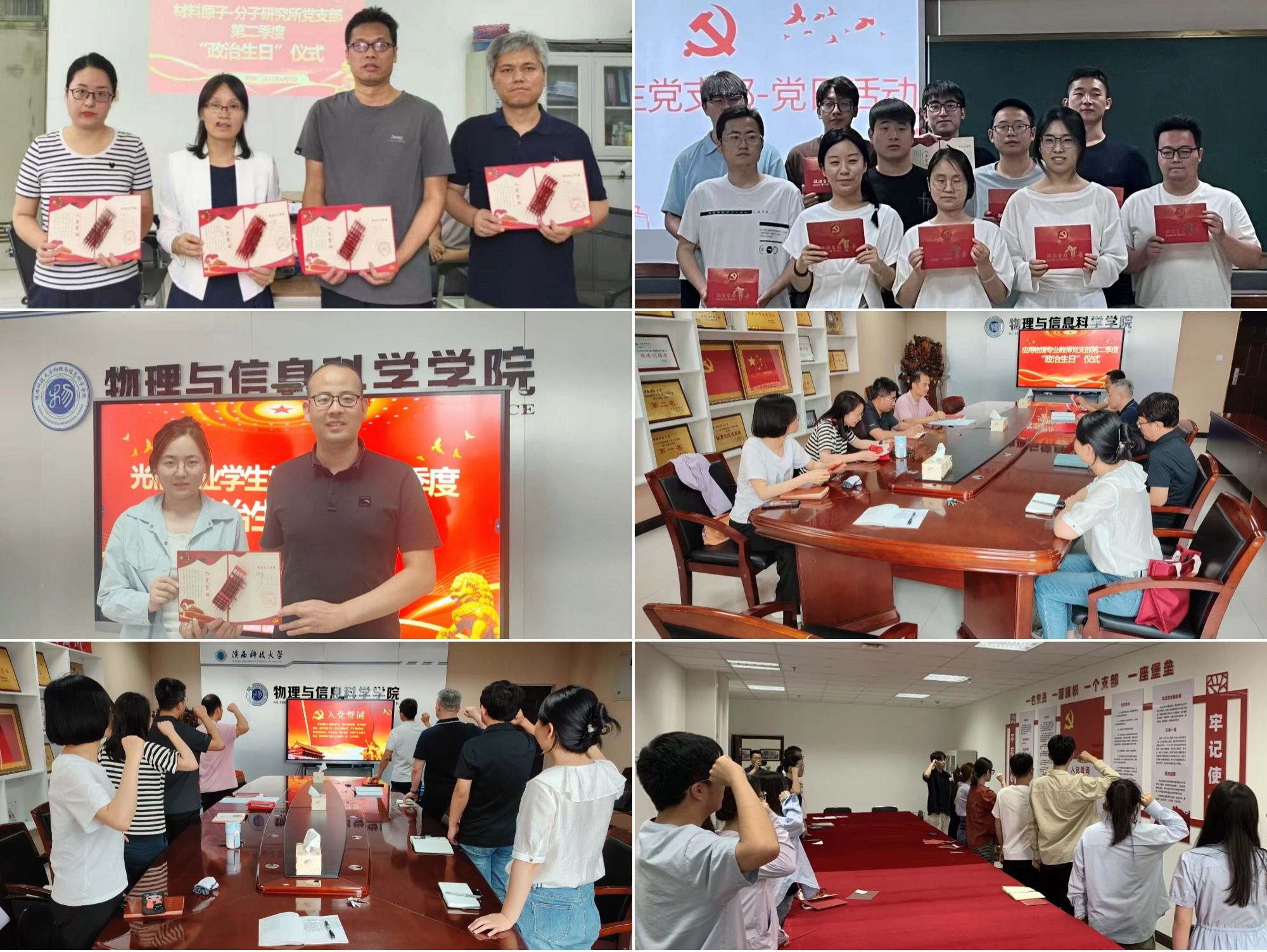 为进一步强化党员的身份意识和责任意识,加强党员党性教育,七一前夕,物理学院党委组织各党支部开展党员过“政治生日”主题党日活动。此次活动通过重温入党誓词、党员分享政治生日感悟、赠送政治生日祝福等环节,让党员们在庄重的仪式中回望初心,汲取奋进力量。