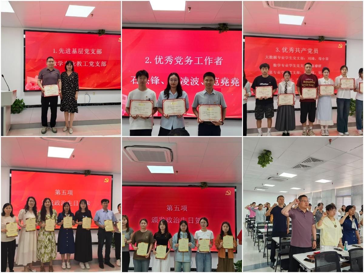 为庆祝中国共产党成立104周年,表彰先进、弘扬正气,激励广大党员踔厉奋发、勇毅前行,数学与数据科学学院党委于6月27日下午在教四A407报告厅举行庆祝中国共产党成立104周年暨“七一”表彰大会。数学学院全体师生党员参会,会议由学院党委副书记宋沛主持。
