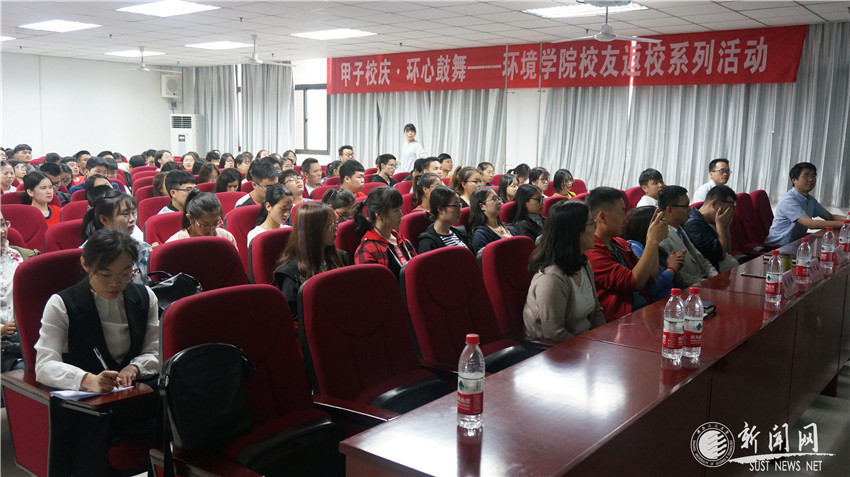 5月26日,环境科学与工程学院举行“甲子校庆·环心鼓舞”校友返校系列活动,5位2005级环境校友——陕西领清环保科技有限公司总经理宋辉辉、比利时派格贸易公司市场部经理杨冬梅、北京铭泽源环境工程有限公司营销经理高爱霞、西安神州水务工程有限公司检测室主任张涛锋、西安市环保局新城分局刘泽航重返母校,参加对话校友讲座。环境学院副院长李成涛、院长助理张乾隆、环境工程系主任王家宏、教授丁绍兰和全体辅导员热情接待了来访校友。