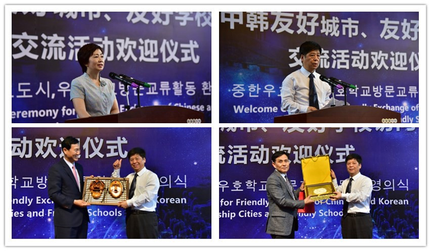 李容万在致辞中首先表达了对附中师生们盛情接待的感谢和来到古帝都咸阳的荣幸,并对附中已发展为咸阳市的品牌学校表示祝贺,希望不断增进彼此友谊,加强交流学习。金智年在致辞中简要回顾了从2014年与附中缔结为友好学校以来,双方坚持交流互访,增进了彼此了解,在教育交流方面有了更多的合作,并提出了以培养出类拔萃的学生为国际交流的最大愿望。随后,双方互赠纪念品,并合影留念。