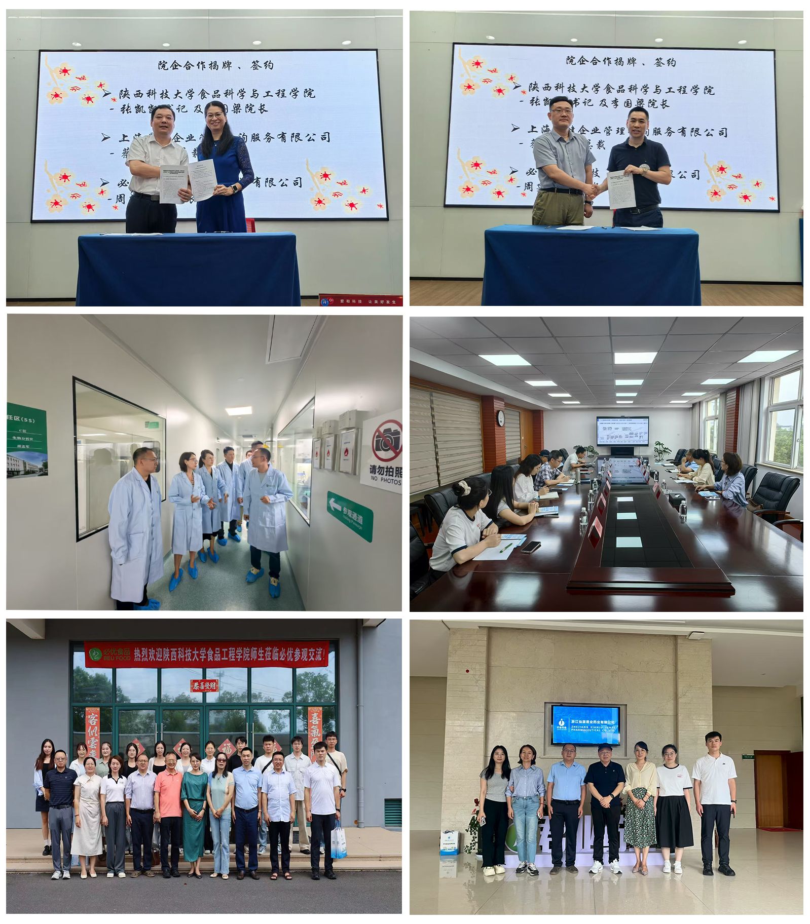 学院一行与各企业深入座谈,详细介绍学院专业设置及人才培养特色,重点推介食品科学与工程、食品质量与安全、生物与医药等领域的学科优势与科研创新成果;企业方分别基于不同细分领域反馈了当前行业发展的形势和趋势,介绍了各自人才需求状况、岗位能力要求及职业发展路径。双方围绕强化实践教学、引入行业新技术课程等具体方向展开探讨,就建立产业导师聘任机制,推动教育链、产业链与创新链有机衔接达成合作意向。