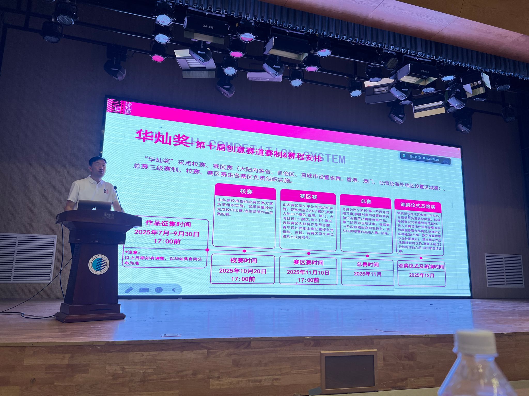 设计与艺术学院院长刘宗明在致辞中指出“两岸新锐设计竞赛·华灿奖以赋能青年创意、链接产业未来为使命,为青年人才搭建展示专业素养的舞台,为推动设计成果转化、助力区域创新发展发挥不可替代的桥梁作用;设艺学院以服务国家战略、引领行业发展为己任,在设计领域深耕不辍,始终致力于培养懂创新、能实践、有担当的高素质人才,正是这份以创意驱动发展、以人才赋能产业的共同追求,与华灿奖成为校赛携手、共促创新的生动实践。”