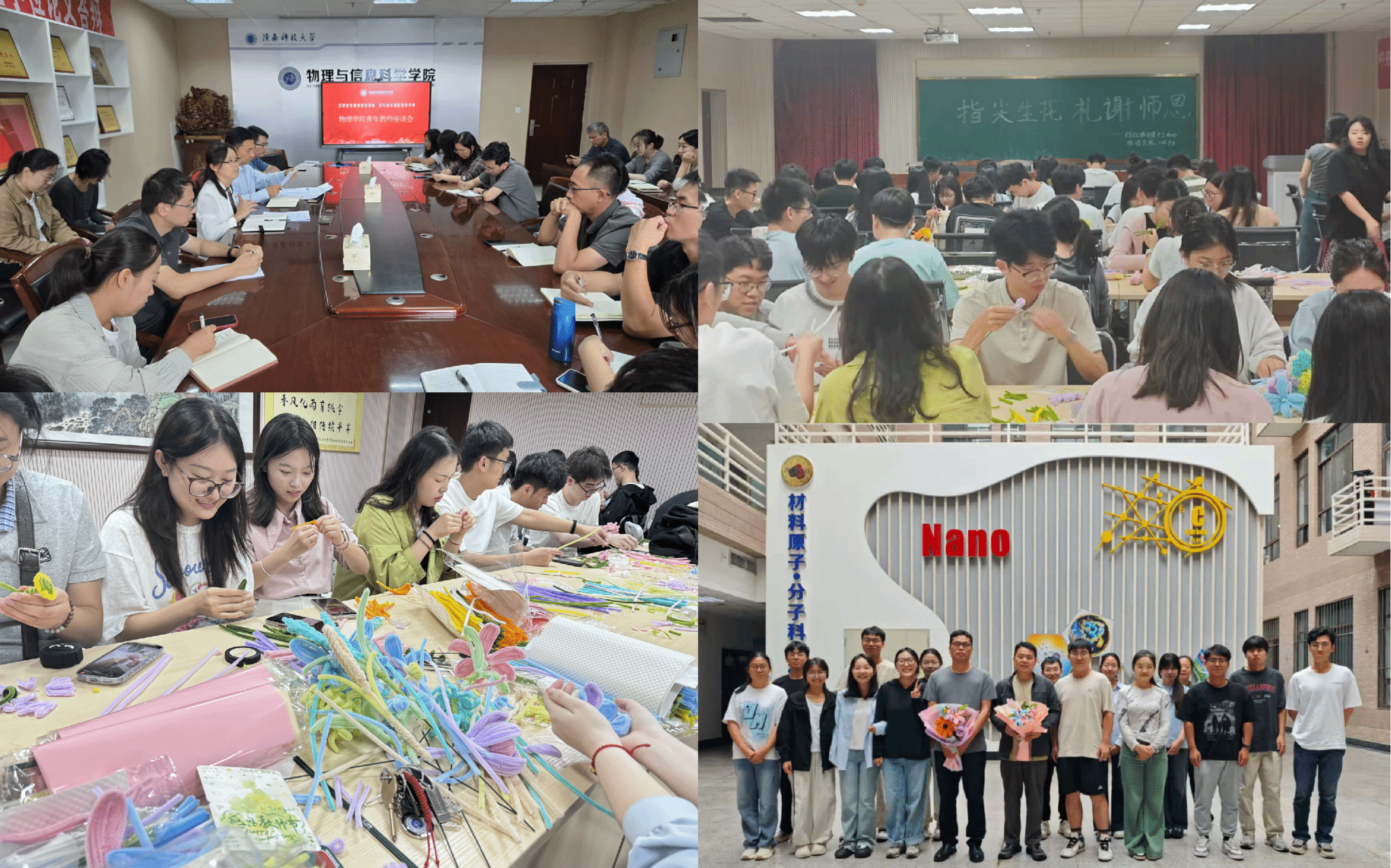 在第41个教师节到来之际,物理学院围绕“以教育家精神铸魂强师,谱写教育强国建设华章”主题开展系列庆祝活动,向辛勤耕耘的全院教师致以崇高敬意,号召全院教师以教育家精神为炬,激发潜心教书育人、服务国家战略、赋能轻工强国的澎湃热情。