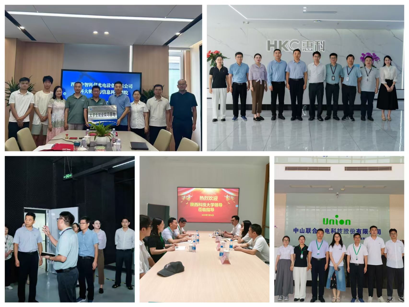 期间,学院一行通过座谈交流、参观企业展厅、考察生产研发一线,深入了解行业发展态势、企业最新技术成果与测试应用方向、企业用人需求。围绕校企合作模式创新、毕业生就业对接、实习实践基地建设等重要议题,与各企业负责人展开深度座谈,旨在构建“校企共赢、长期稳定”的深度合作关系,推动专业建设、学生发展与企业需求同频共振。通过走访,与西安中智科仪光电设备有限公司签署大学生就业实习基地协议,并完成授牌仪式,为学生实践就业搭建坚实平台;与深圳惠科股份有限公司达成共识,就人才定制化培养、校企共建实验室等合作方向明确推进路径;在中山联合光电科技股份有限公司等企业调研中,双方聚焦现代光学企业技术研发重点、岗位人才需求标准,进一步落实企业专家参与学院课程设计、实践教学的具体实施方法,助力人才培养更贴合行业实际。