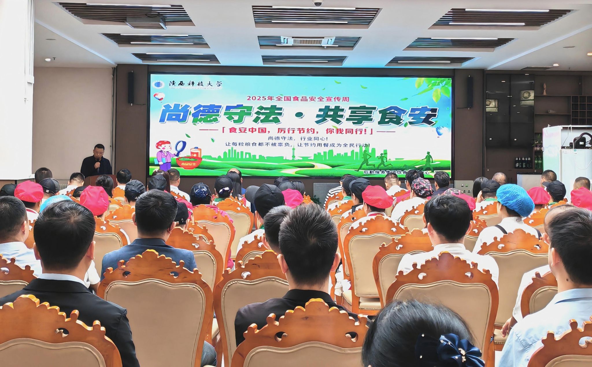 为进一步提升师生食品安全意识,加强食品安全宣传力度,积极响应全国食品安全宣传周号召,9月17日上午,陕西科技大学2025年食品安全宣传周启动仪式在馨园餐厅举行。本次活动以“尚德守法·共享食安”为主题,旨在营造共建共治共享食品安全的良好氛围。