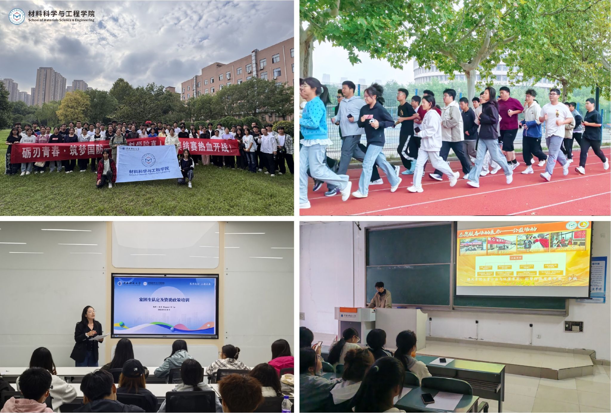 促进五育并举,拓展多元成长平台,赋能学生发展。学院高度重视学生多元发展,打造“体·阅·学”三维浸润计划,以“晨练暮学行动”为抓手,提升新生对于阅读和体育的热情,营造优良学风氛围;军训期间开展“砺刃青春・材子筑梦”校园真人CS大赛,在实践中体悟国防意义,为破解校园多元互动难题提供了趣味载体;开展竞赛科普、职业生涯规划、资助政策宣讲等专题讲座,加强新生对科创竞赛的认识,解答新生个人规划、考研与就业形势、资助政策等方面问题;举办新生辩论赛、校歌传唱选拔赛、学生组织宣讲会等,提高新生对参与课外活动的热情,锻炼同学们的逻辑思维与书面表达能力,增强同学们身体素质与班级凝聚力,极大程度上丰富了同学们的课余生活。