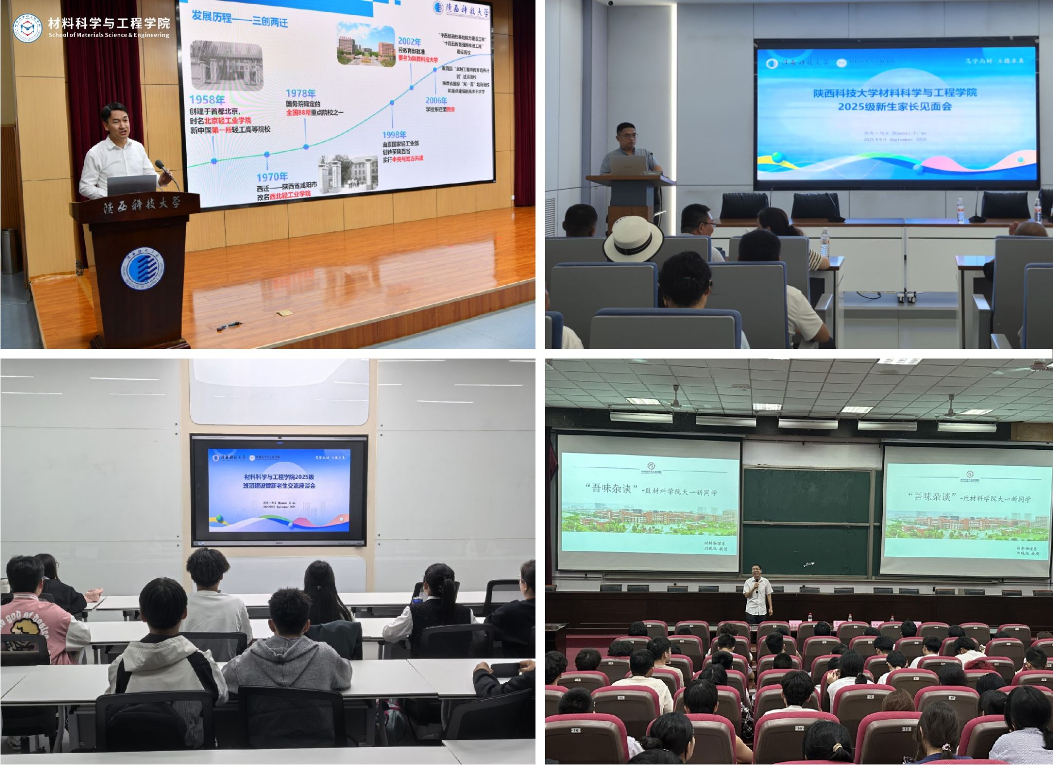 深化思想引领,凝党团班组织合力,培育优良学风。迎新期间,我院开展“材料学院新生家长见面会”,累计接待百余名新生及家长,解答其在学业、生活等方面问题;以材料校友会成立大会为契机,为全体新生开展“开学第一课”入学教育大会,院长杨海波从学院的历史沿革、校园生活等多方面进行介绍,鼓励同学们紧抓时代机遇、提高认知上限,做“三创两迁”精神新传人;各系主任、班主任组织开展新生见面会与专业宣讲专题讲座,使新生提前了解专业知识内容,形成专业基本认知;2025级辅导员李恩带领全体新生集中学习《陕西科技大学章程》与《大学导航》详情内容,帮助新生了解学校基本规定和学院管理制度;开展“班委座谈会暨班团建设交流会”,邀请高年级优秀学生代表与新生进行经验交流,为打造优良学风、班团一体化建设夯实基础。