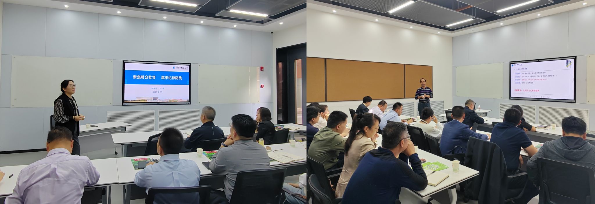 此次培训由国资处处长张学平和财务处处长刘瑞进行专题辅导。会上,张学平作了《强化招标采购风险,助推学校“双一流”建设提质增效》授课,细致解读了政府采购的概念、要素、法律条款、方式等,深入剖析了招标采购的风险和应对策略。刘瑞作了《聚焦财会监督,筑牢纪律防线》授课,深入解析了近年财务、会计政策,结合生动案例分析了高校财会监督的重点和构建监督合力方法。