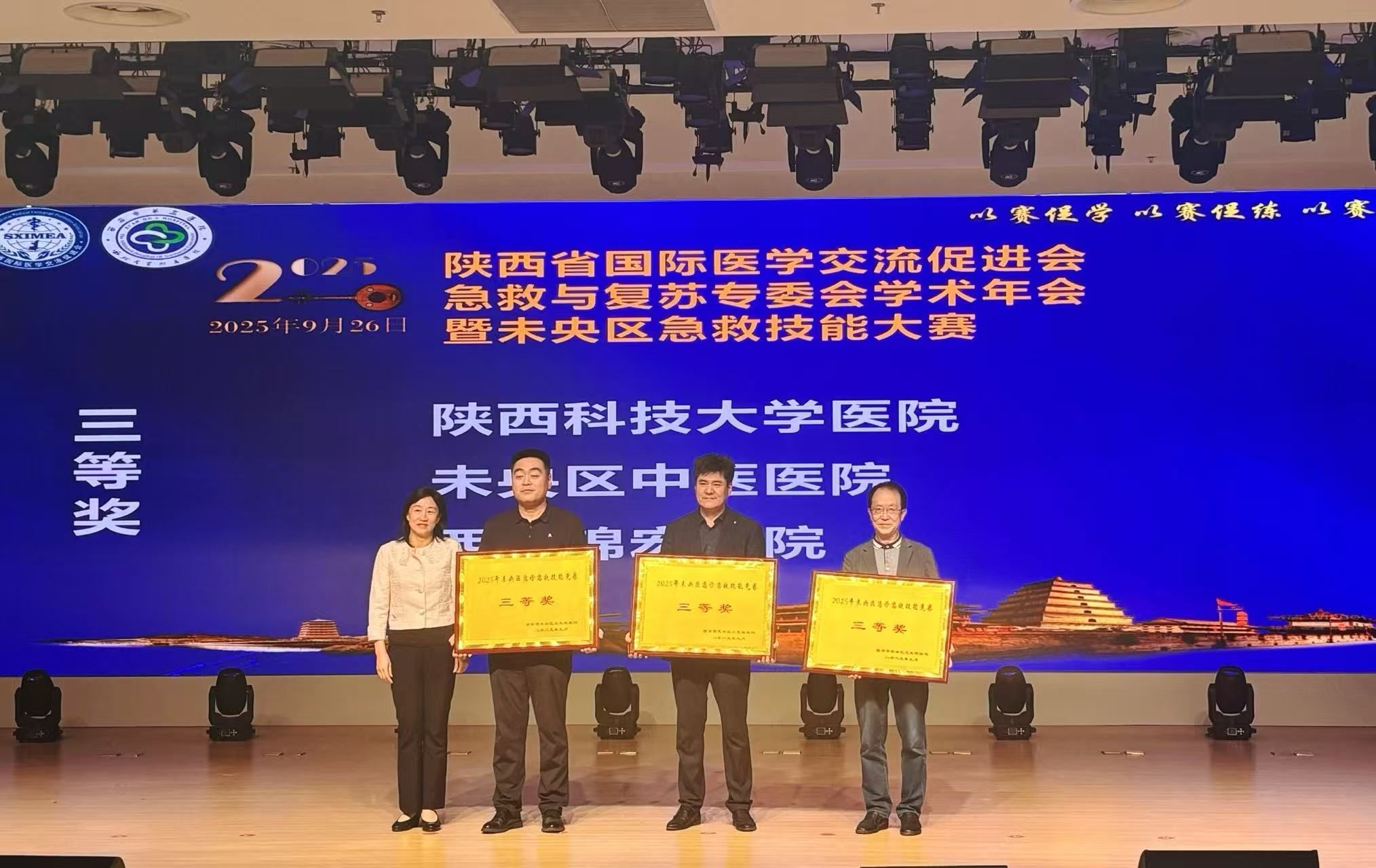 9月26日,由陕西省国际医学交流促进会急救与复苏专委会主办的未央区急救技能大赛圆满落幕。我校医院组建的参赛队伍在33支参赛队伍中脱颖而出,最终以总分第四的成绩荣获团体三等奖,展现了我校医疗队伍在急诊急救领域的专业素养。