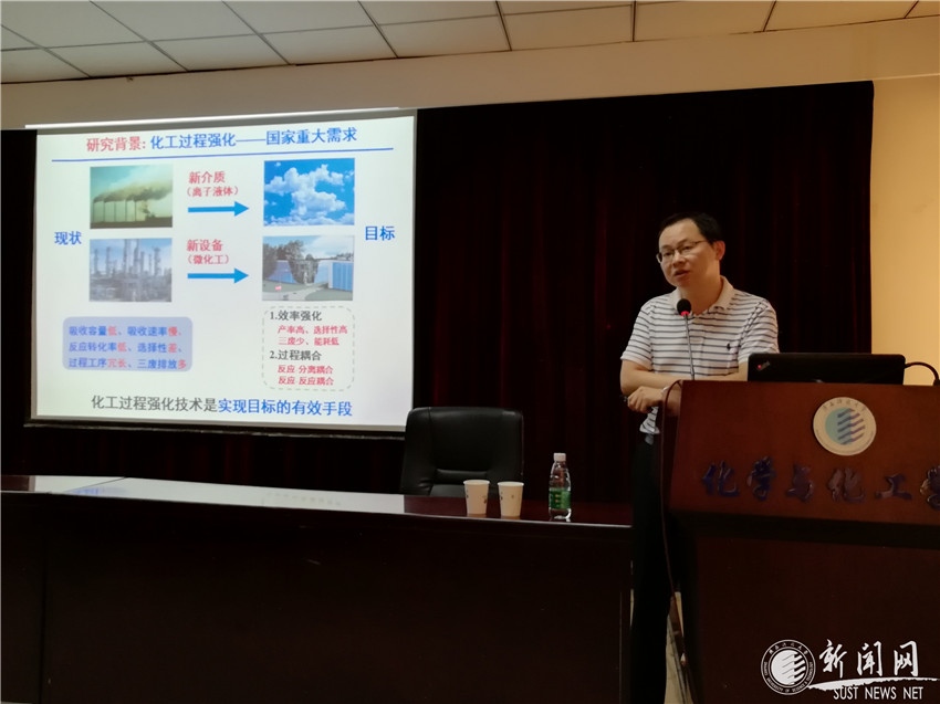 6月25日下午,学院邀请2002级校友,现任江西师范大学特聘教授的陶端健作客“优秀校友论坛”,作了题为“离子液体设计调控与过程强化”的报告,介绍了他及其课题组近5年来在离子液体功能调控及介质强化方向的研究进展。作为校友,他还与参会师生分享了自己在科研道路上的成长经历,对研究生如何规划科研生涯,如何平衡基础研究与应用研究等方面提出了有益的指导和建议。