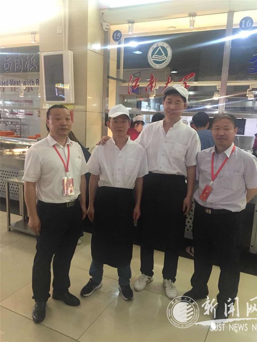 校党委副书记王道安(图左)、江南大学副校长顾正彪慰问来我校交流的江南大学饮食工作人员