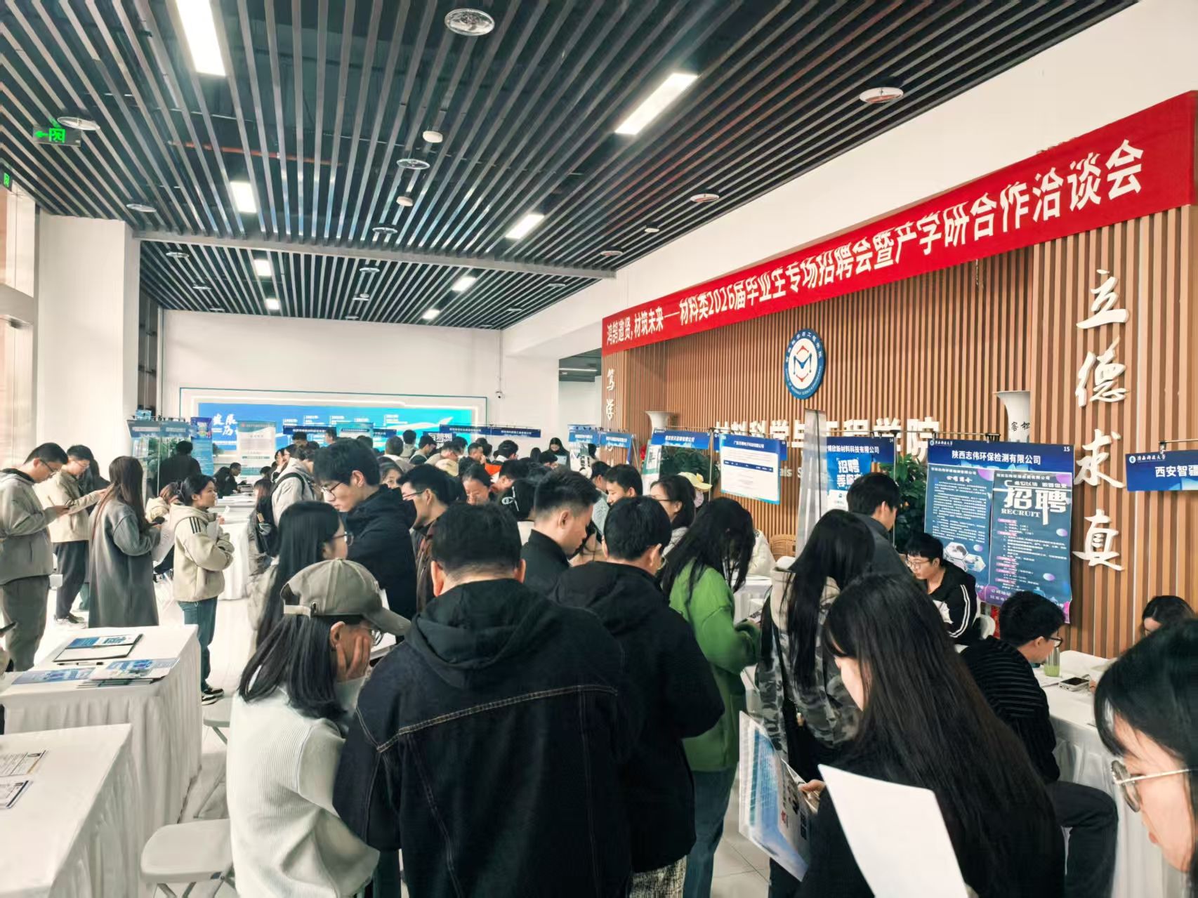 10月24日,由陕西科技大学就业指导中心主办,材料科学与工程学院、环境科学与工程学院联合承办的“鸿鹄邀贤,材筑未来”材料类2026届毕业生专场招聘会暨产学研合作洽谈会在新实训楼一楼顺利举行。