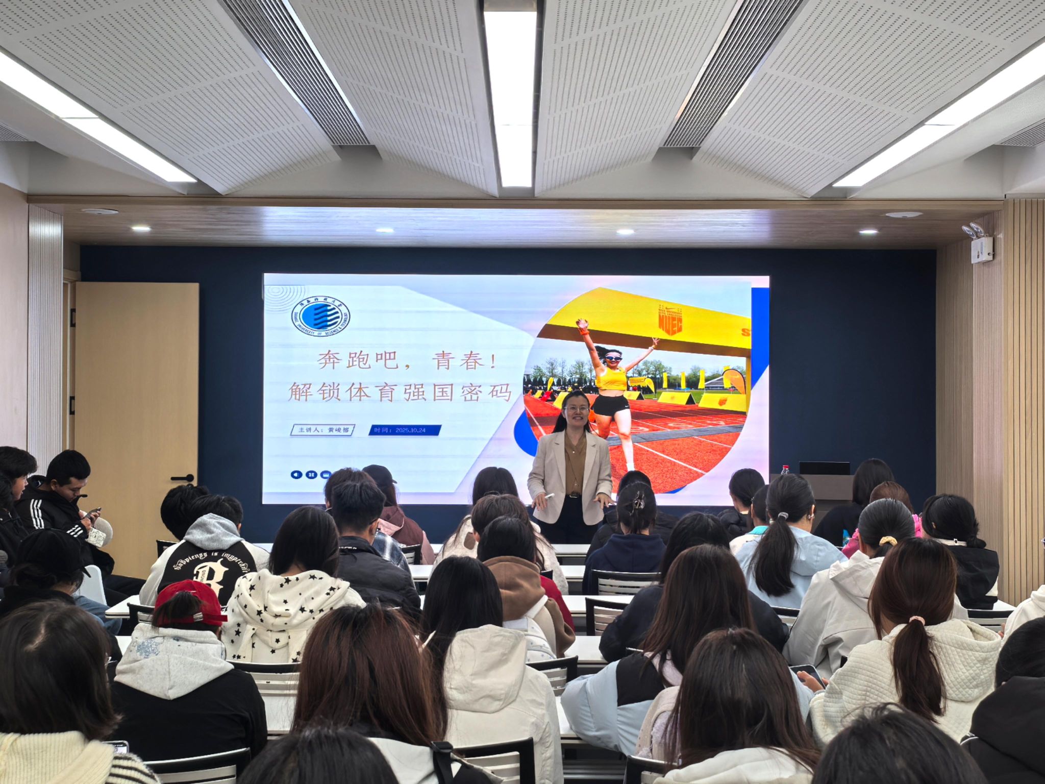 10月24日,学科建设办公室主任黄峻榕以“奔跑吧,青春!——解锁体育强国密码”为题,为食品学院大一新生讲授“加快建设体育强国”专题思政课。