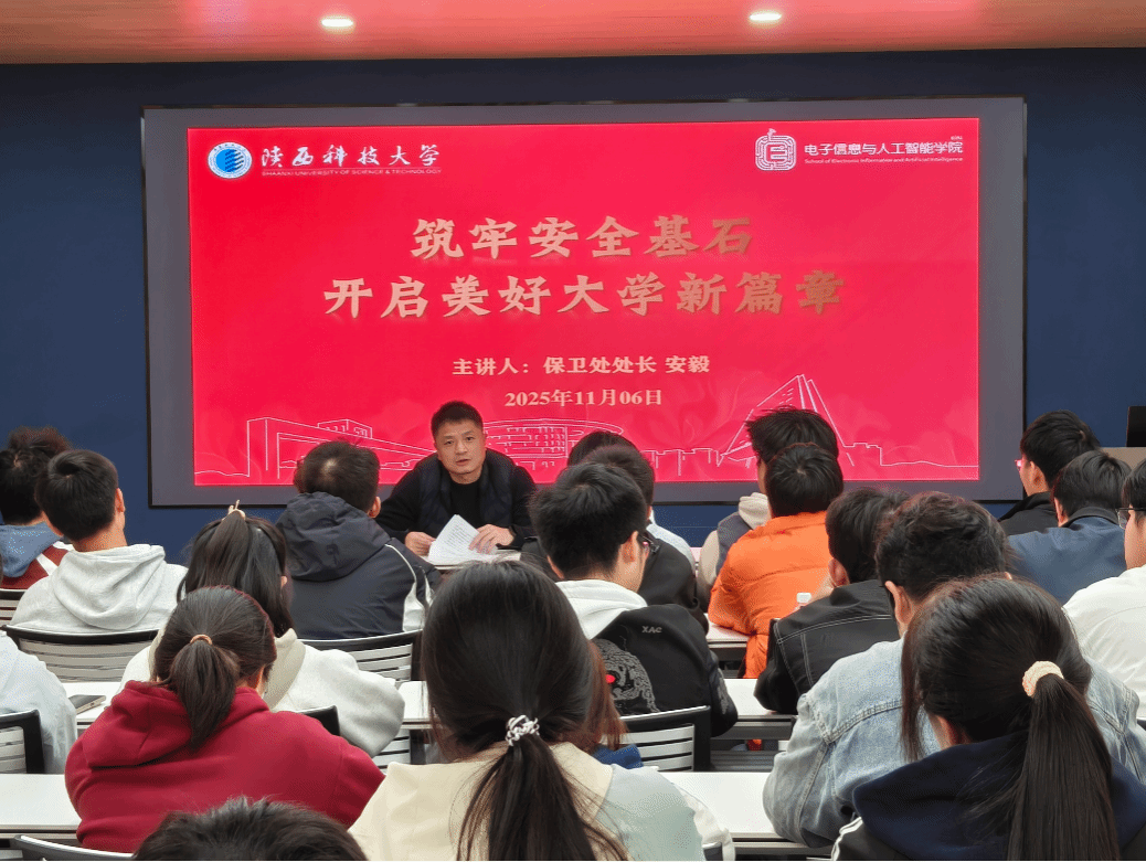 11月6日,保卫部部长安毅以《筑牢安全基石,开启美好大学新篇章》为题,为电智学院2025级新生带来了一堂生动的思政课。