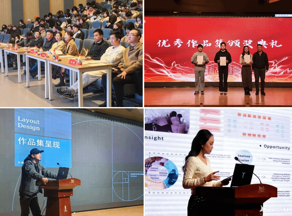 在经验交流环节,三位特等奖获得者依次作经验交流分享。同学们聚焦专业特色,从选题、设计流程闭环、创新点凝练及作品叙事逻辑等方面系统阐述了如何构建兼具思想深度、严谨逻辑与人文温度的作品集。