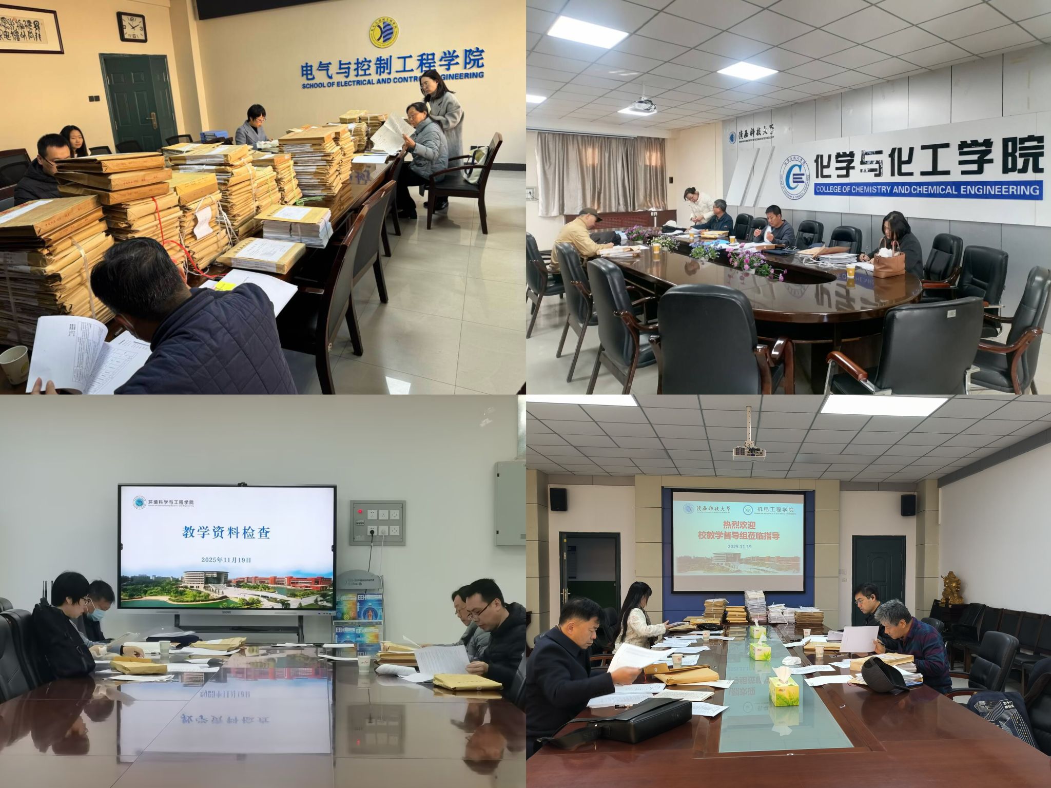 精准统筹,确保检查全面覆盖。学校高度重视此次专项检查的组织实施,将其作为推动审核评估整改落地的重要环节,专门组建四支由校级督导带队的专家检查组,通过明确分组职责、细化工作标准,构建权责清晰的检查工作体系。此次检查实现全校 16 个学院(部)全覆盖,各检查组严格遵循既定时间节点,在指定场地有序开展集中核查,确保整个检查流程规范、高效推进。