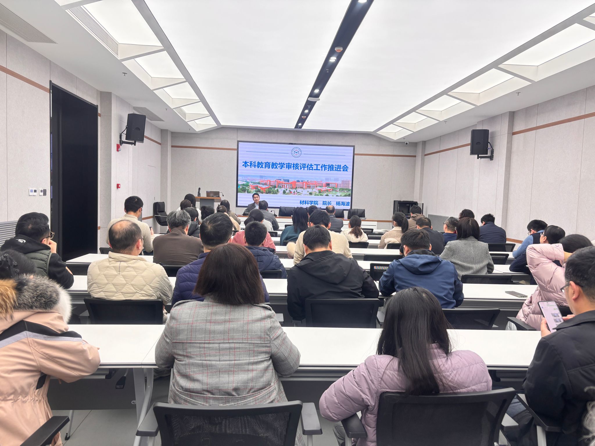 为全力推进本科教育教学审核评估各项工作,11月19日下午,材料学院召开本科教育教学审核评估工作推进会,学院院长杨海波主持会议,学院全体教职工参会。