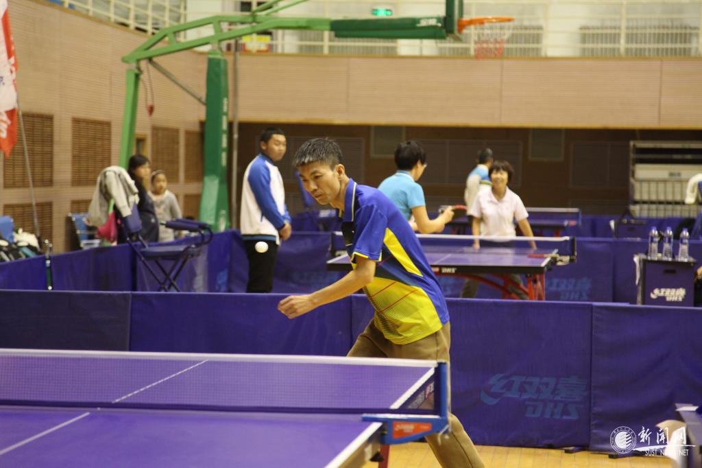 晚7:00,哨声一起,比赛正式开始,只见整个比赛场上白色的球左攻右击。比赛以单打的形式展开,在众多水平不相上下的参赛运动员之间进行,比赛也因运动员的拼搏变的更加精彩:直拍、横拍、扣球、旋转球、弧线球,小小的乒乓球在台面上锐不可当,比赛中不时传出热烈的喝彩声与兴奋的“好球”声。