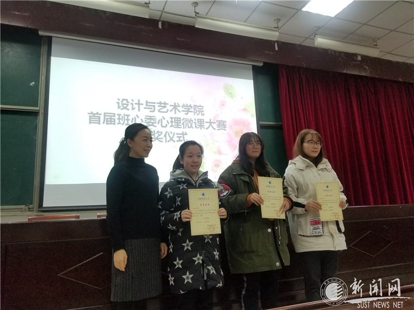 12月6日,在3号教学楼101报告厅进行了设艺学院首届班级心理委员心理微课知识大赛颁奖仪式。由宋宝萍、董雪、安玲、安然等老师分别为获奖学生颁发了证书及奖品。