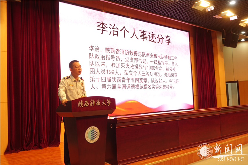 李治生动幽默地讲述了“百米呐喊救女婴”、“火场救援将呼吸器让给婴儿”等亲身经历,让在场人员在风趣幽默的语言中深刻感受到了为国家鞠躬尽瘁的战士们背后付出的艰辛。作为一名消防官兵,他在平凡的岗位上取得了不平凡的成就:先后荣获“中国好人”、“第十四届陕西青年五四奖章”、“陕西好人”等荣誉称号。但每个光鲜的荣誉背后都有非同寻常的付出,有时甚至面临着生命危险。