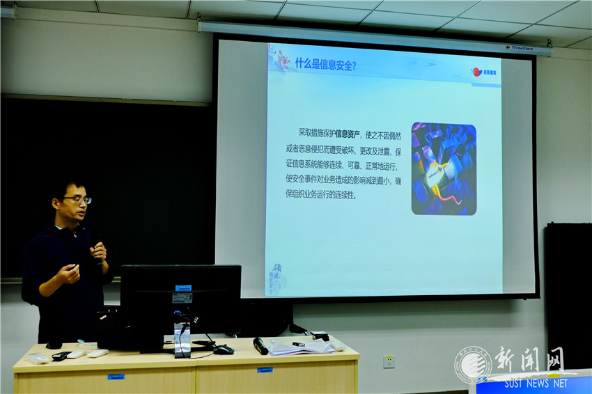 举办网络安全知识讲座。9月18日下午,由主办单位信息与网络管理中心、协办单位学工部组织的网络安全专题讲座在教四C-411会议室举行,特别邀请了西安建筑科技大学网络与信息化管理处刘欣老师为我校大学生做了一场题为“网络与信息安全漫谈”的精彩讲座。本次网络安全讲座向同学们普及了网络安全知识,提升了我校学生的网络安全意识,对于大学生们来说具有深远的意义。在当前网络环境下,网络安全与学习生活息息相关。重视网络安全,人人有责;防范恶意非法网络攻击,刻不容缓。