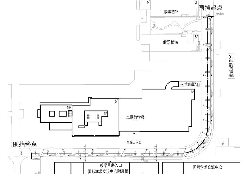 我校教学区环道维修改造工程已开工建设,自7月4日起先行施工环道东南区域雨水管网,具体施工范围为教学楼1B至国际学术交流中心西侧。届时需要对此段环道进行半幅封闭施工,该区域停车位将停止使用,车辆可驶入二期教学楼地下车库停放,由此给广大师生带来不便敬请谅解。