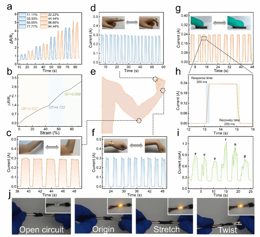 2. 在水凝胶基体中,引入FeCl3-单宁酸金属配位键与PVA/淀粉/乙二醇间形成的多重氢键,共同构建了双动态可逆交联网络。该网络赋予材料优异的拉伸性、韧性和快速自愈合能力;