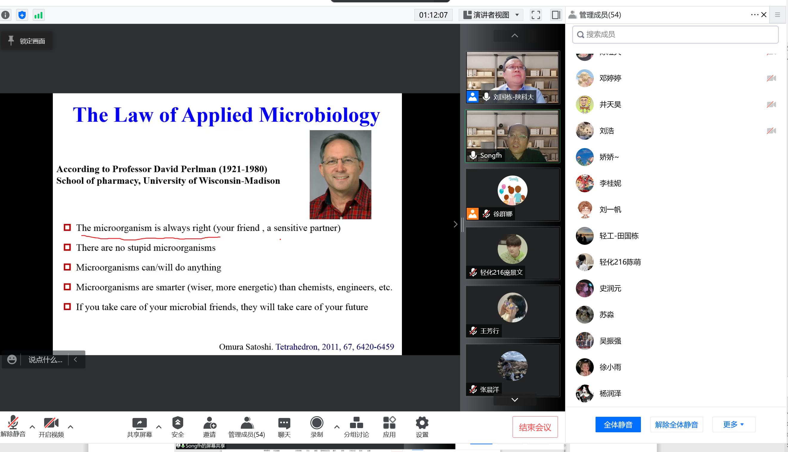 4月19日,应轻工科学与工程学院和研究生院邀请,北京工商大学宋福行教授做客我校“未央导师论坛”,作了题为“海洋微生物中抗菌活性天然产物筛选”的线上学术报告。报告由轻工学院副院长刘国栋教授主持,学院部分教师、相关专业研究生及本科生聆听了本次报告。