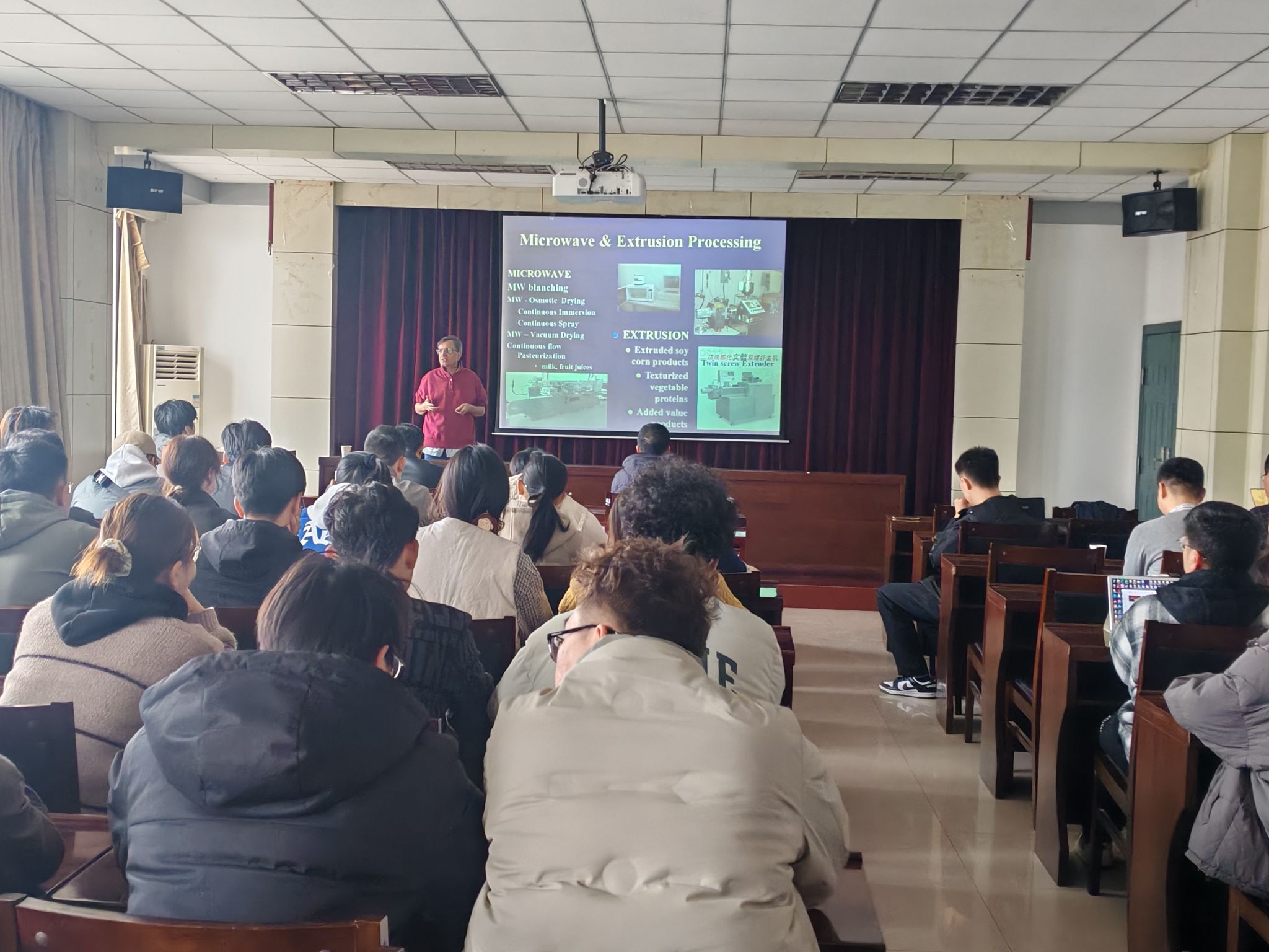 报告会上,Ramaswamy教授首先介绍了微波技术的加热原理、主要装备及应用范围,包括灭菌、干燥、提取等,随后分享了其团队在新型微波技术装备(微波-热风、微波-真空、微波-欧姆)方面的突破性成果,探讨了微波加热安全性、有效性及工业化的应用,最后指出微波技术作为一种新型物理加热方法,在采后农产品热处理应用中具有潜在优势和广泛应用前景,同时也提出当前农产品微波加工存在的问题和未来的研究方向。报告会后,Ramaswamy教授与参会师生进行了深入的交流,讨论了微波非热效应提高措施及在工业上的应用潜力等。此次报告内容全面,对进一步促进国际学术交流和合作,提高科研国际化视野具有重要意义。