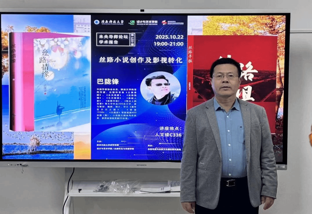 10月22日,应设计与艺术学院和研究生院邀请,陕西文学院签约作家、二级编剧巴陇锋老师做客陕西科技大学“未央导师论坛”,作了题为“丝路小说创作及影视转化”的学术报告。报告会由设艺学院副院长吉平主持,学院相关专业教师和研究生参加了此次报告会。