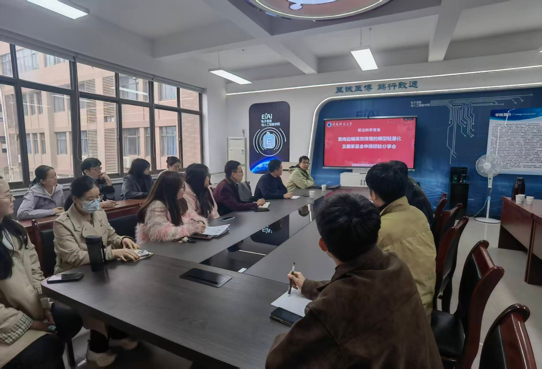 为助力电子信息与人工智能学院(简称电智学院)国家自然基金申报工作,把握国家自然科学基金申报导向,提升申报竞争力。11月12日,应我校科技处、前沿院及电智学院邀请,西安电子科技大学王楠楠教授做客我校“前沿科学报告”,在实验楼 2A-408 会议室作 “面向边端高效推理的模型轻量化及国家基金申报经验分享会” 专题报告。学院全体国家自然科学基金申报教师参会交流。