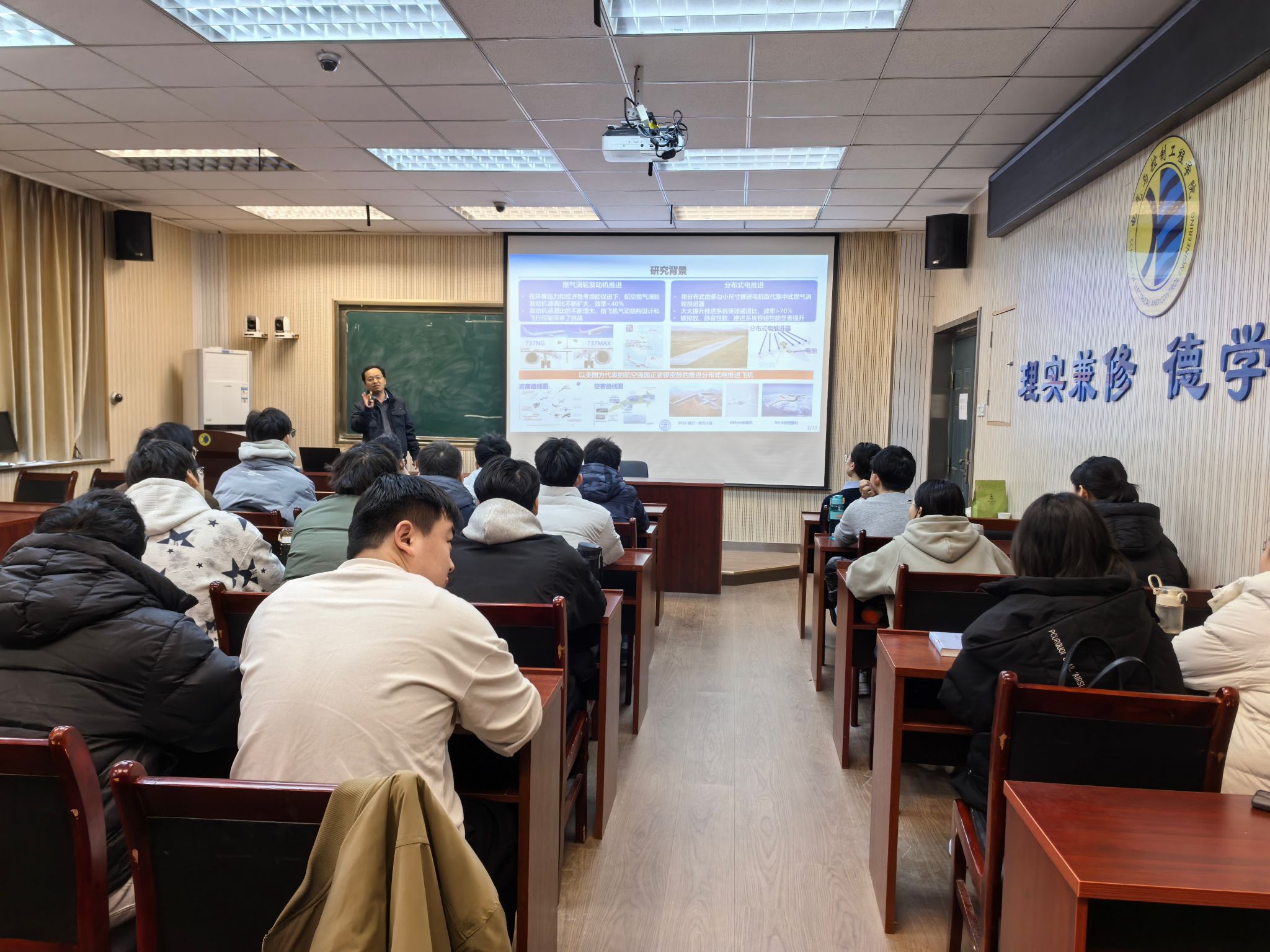 报告结束后,寇鹏教授与在场师生就电推进系统建模、预测控制算法实现、未来混合电推进发展趋势等议题进行了深入交流与热烈讨论。本次报告内容翔实、视角前沿,不仅展示了我校在电气工程与控制学科交叉领域的学术活力,也为师生开拓科研视野、激发创新思维提供了宝贵机会。