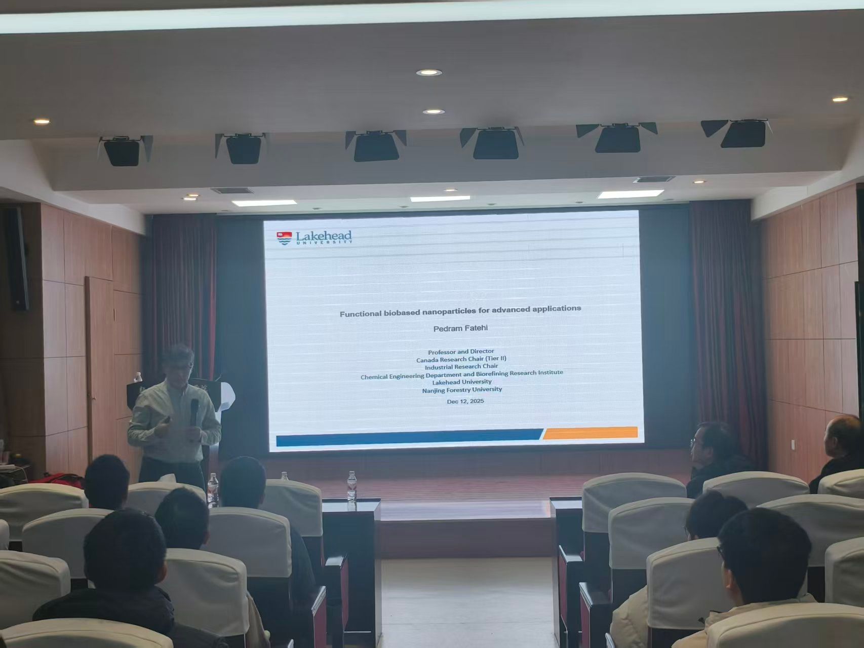 应我校轻工科学与工程学院(柔性电子学院)和国际交流处邀请,加拿大湖首大学化学工程系Pedram Fatehi教授于12月12日做客我校“国际教育论坛系列讲座”活动,开展题为“Functional biobased nanoparticles for advanced applications”学术报告。轻工学院师生代表参加报告会。